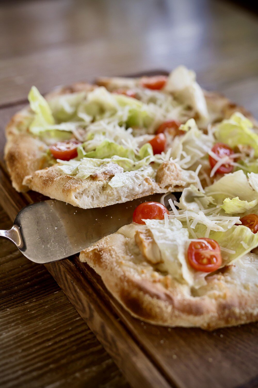 Курица, томаты, сыр пармезан, сыр моцарелла, салат айсберг, соус цезарь